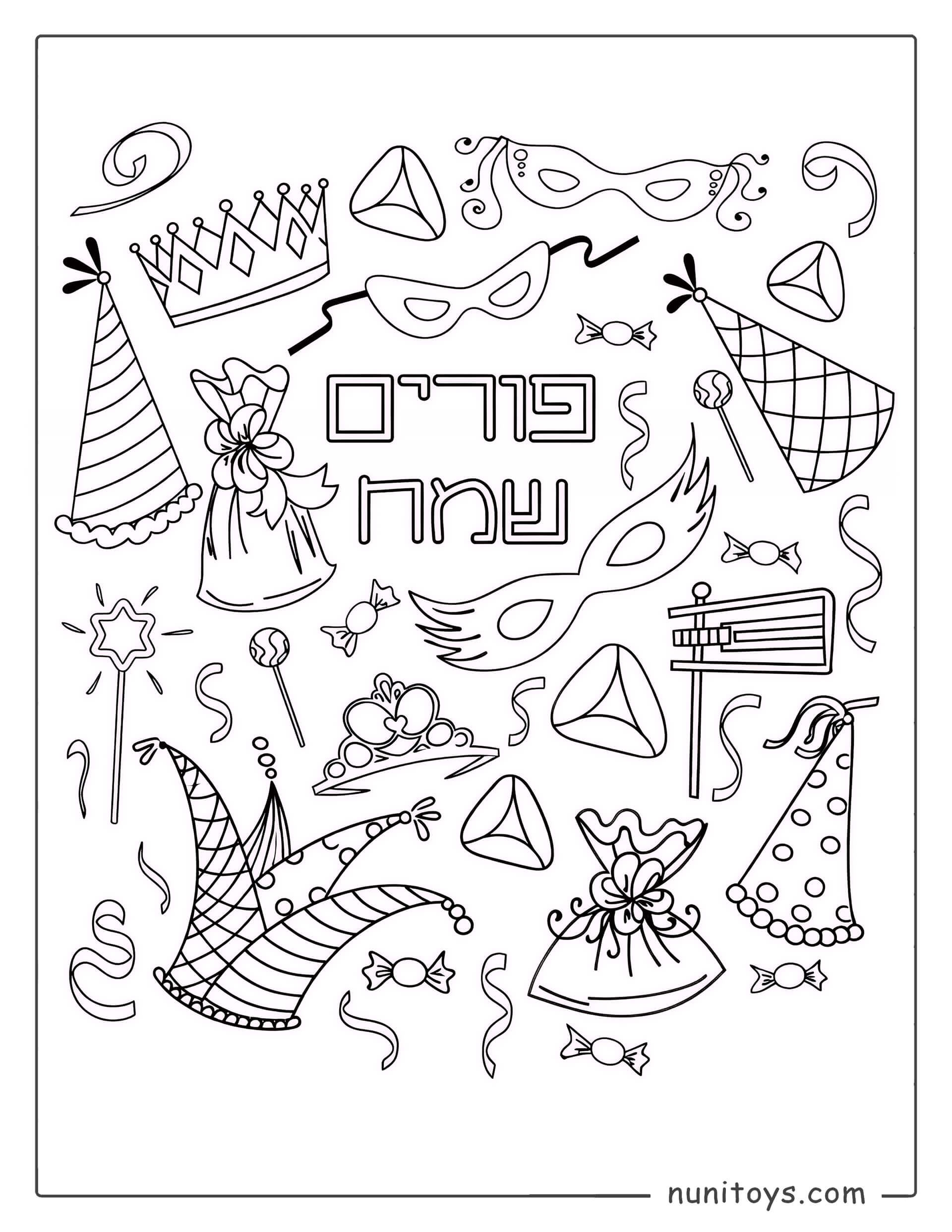 تتضمن المجموعة رسومات مستوحاة من مظاهر عيد بوريم، مثل الأزياء التنكرية، الأقنعة، الهدايا، والمشاهد الاحتفالية، مما يجعلها مثالية للاستخدام في المنزل، المدارس، أو الأنشطة الجماعية خلال فترة العيد. جميع صفحات التلوين مجانية 100٪، ومتوفرة بصيغ PDF وJPG، وجاهزة للطباعة بسهولة في أي وقت.