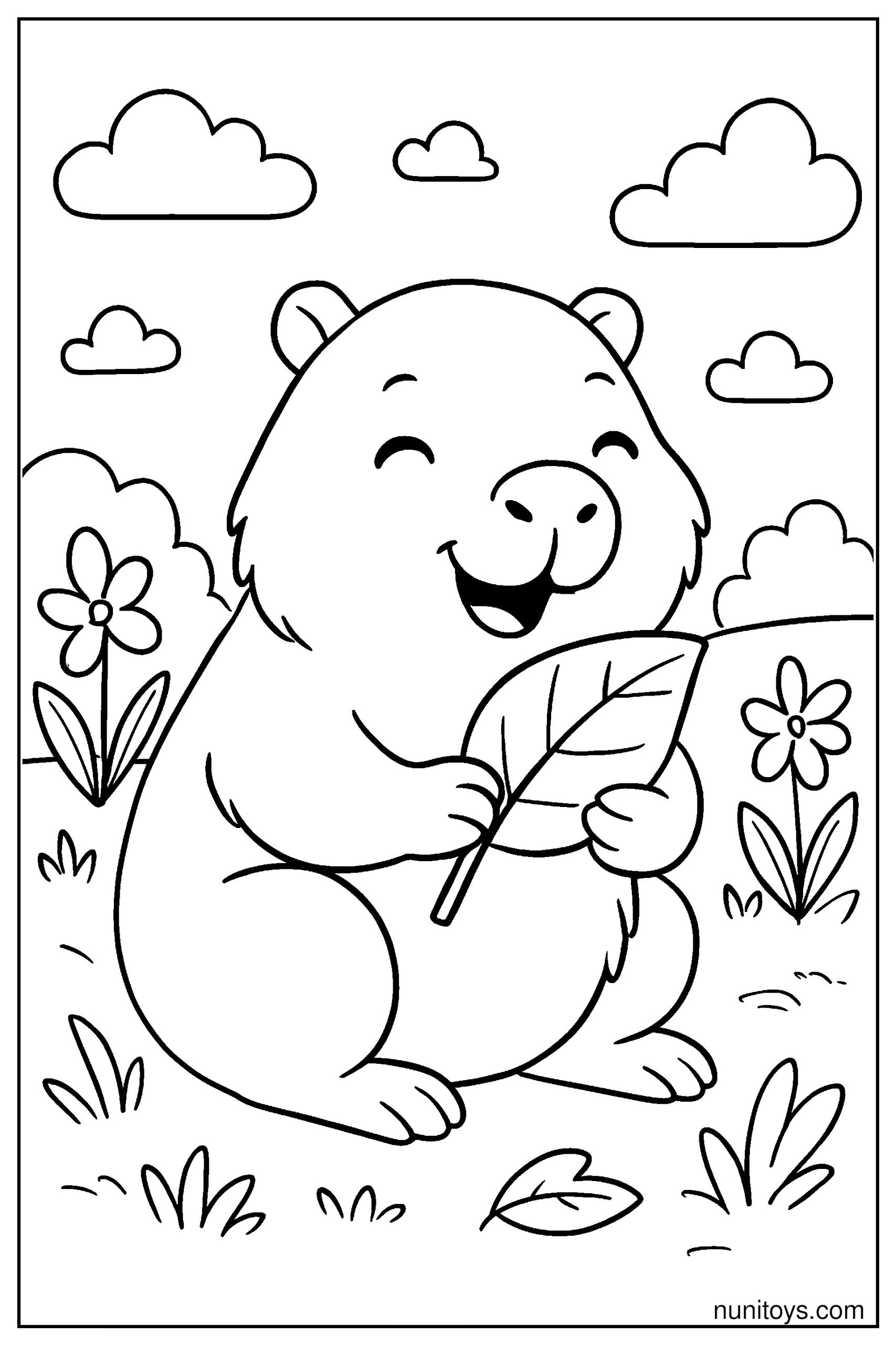 Use several coloring pages to create the same capybara in different seasons—summer, winter, autumn, and spring. Kids can change colors, backgrounds, and details to match each season. This helps them understand seasonal changes while exploring creative variations.