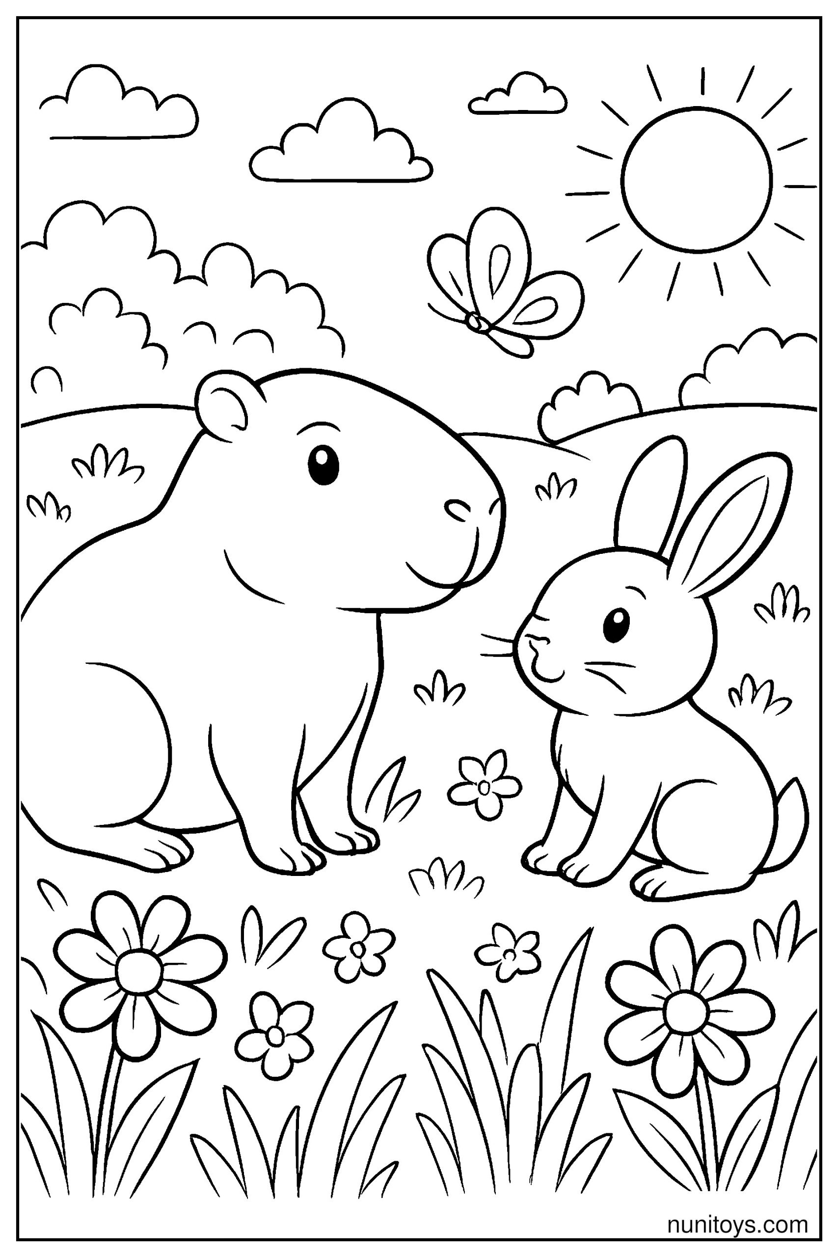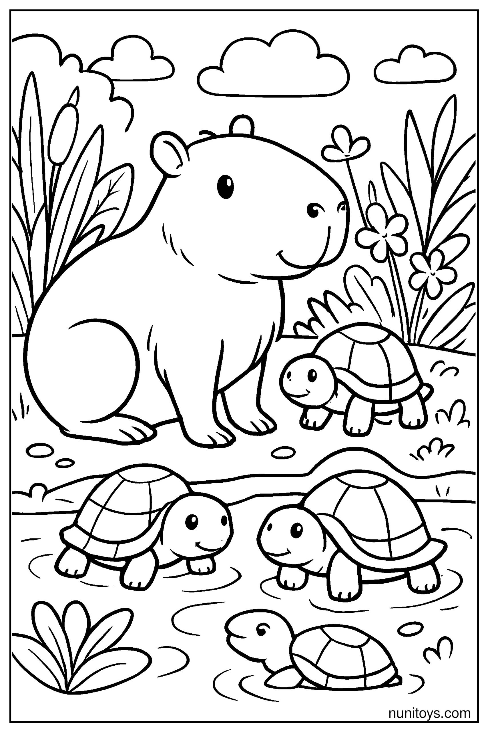 Capybara Coloring Pages with Animal Friends and Shared Habitats