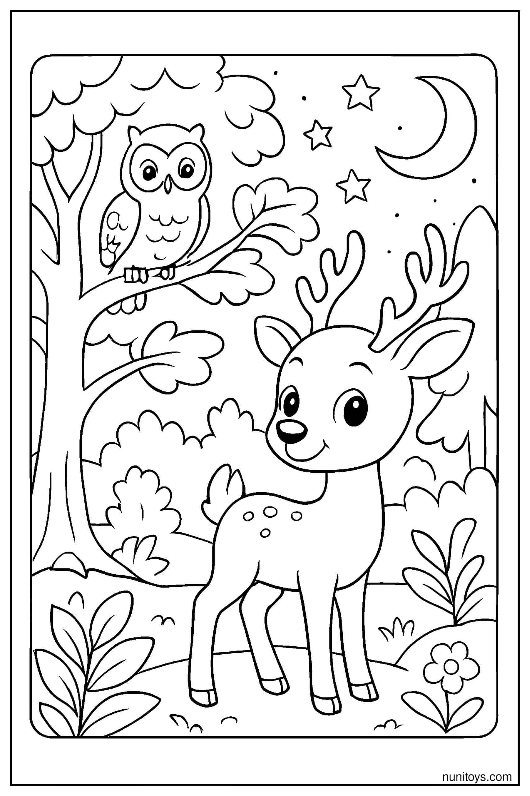 These printable deer coloring pages also promote focus and patience. Completing a full forest scene encourages kids to slow down, stay attentive, and use their imagination, supporting cognitive development through a calm and enjoyable activity.