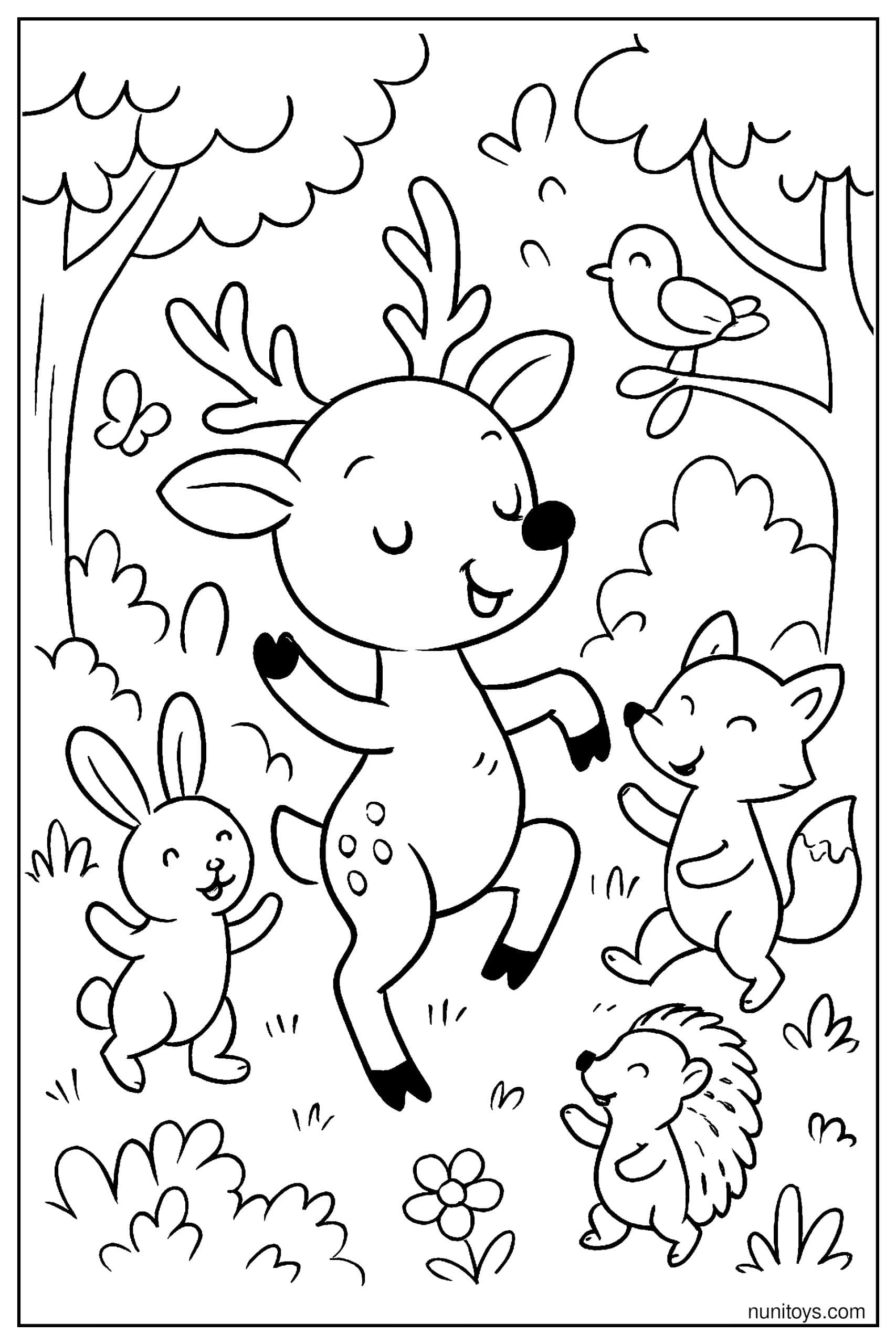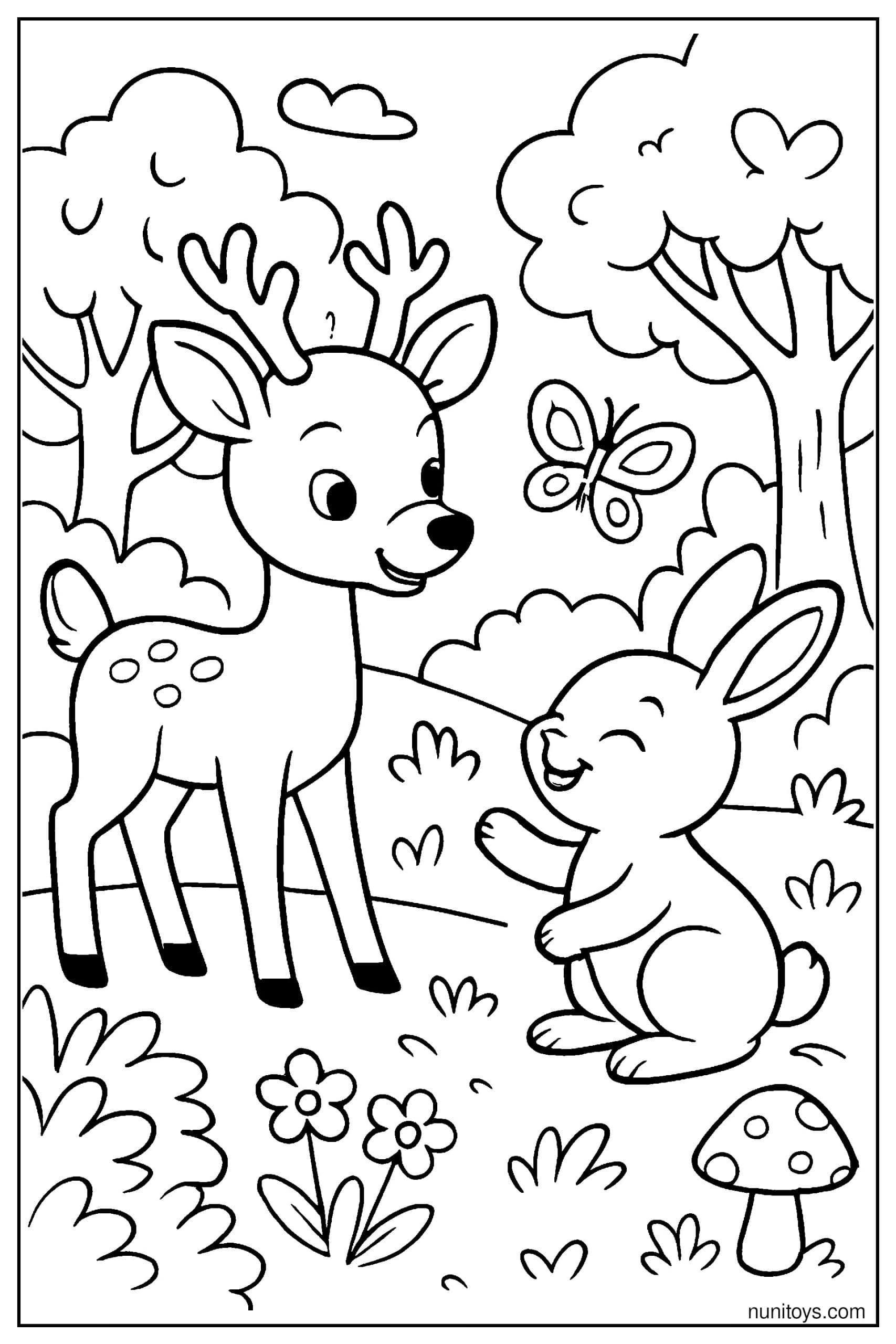 Deer coloring pages featuring friends create warm and engaging scenes full of interaction and storytelling. These printable designs include deer with other animals, companions, and friendly moments. Enjoy free coloring pages that promote kindness, imagination, and fun, perfect for kids who love animals and shared adventures.