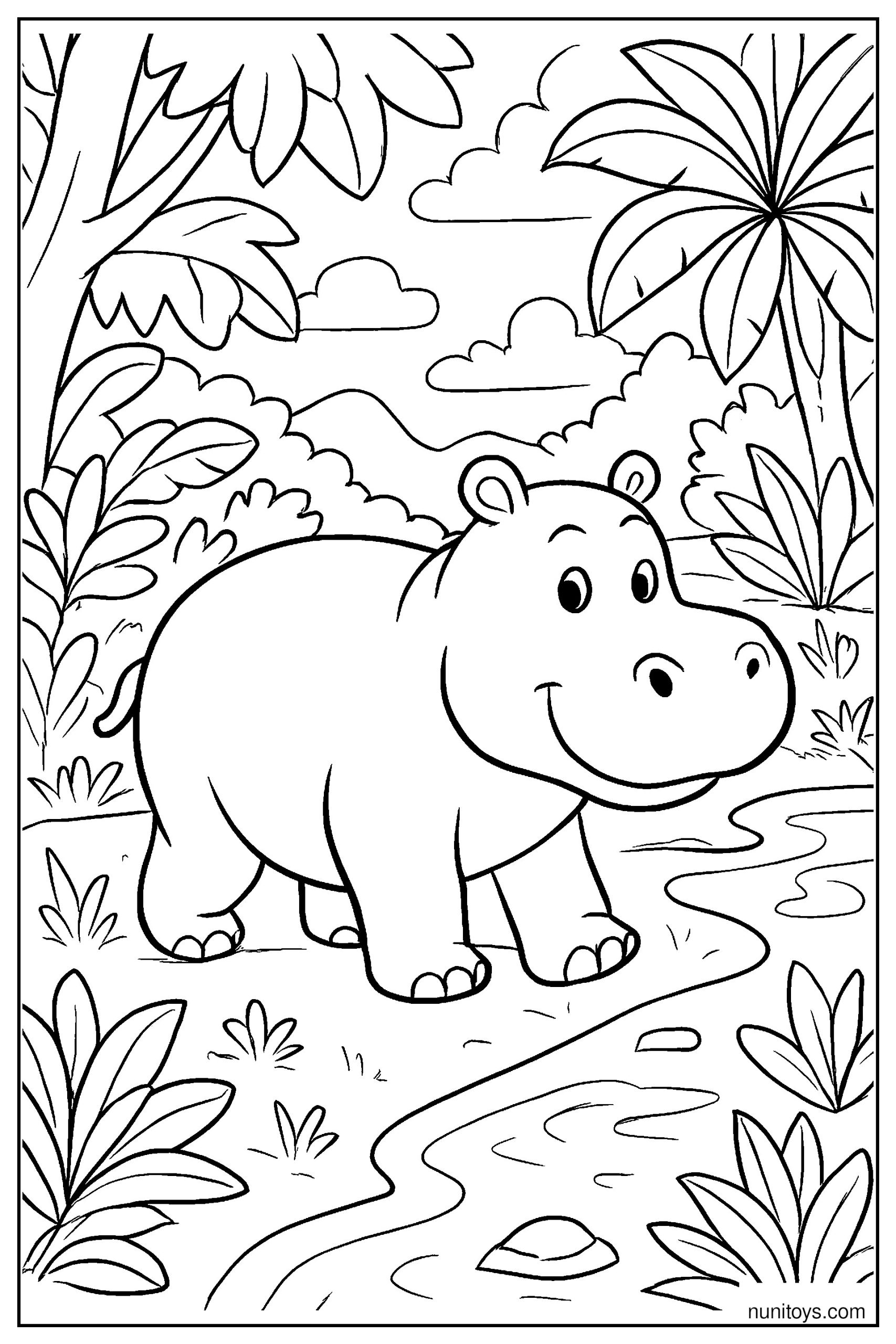 You’ll find happy baby hippos, hippos splashing in the water, and peaceful scenes along rivers and lakes. Some pages include jungle and nature backgrounds, adding extra detail and imagination to every coloring experience. Each coloring page is designed for easy printing at home, making it ideal for quiet time, school activities, or creative play.
