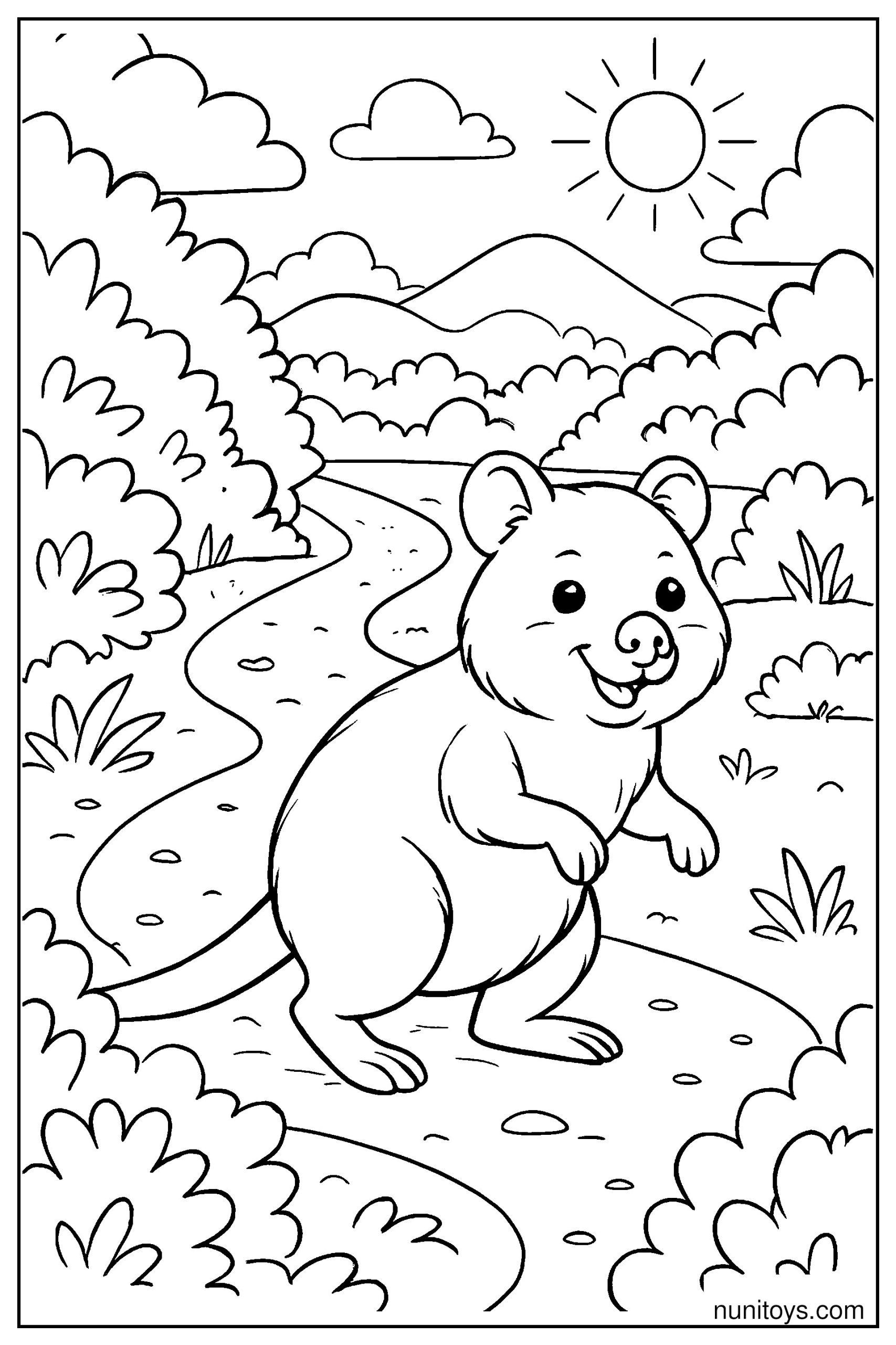 Quokka Adventure Coloring Pages with Nature and Exploration