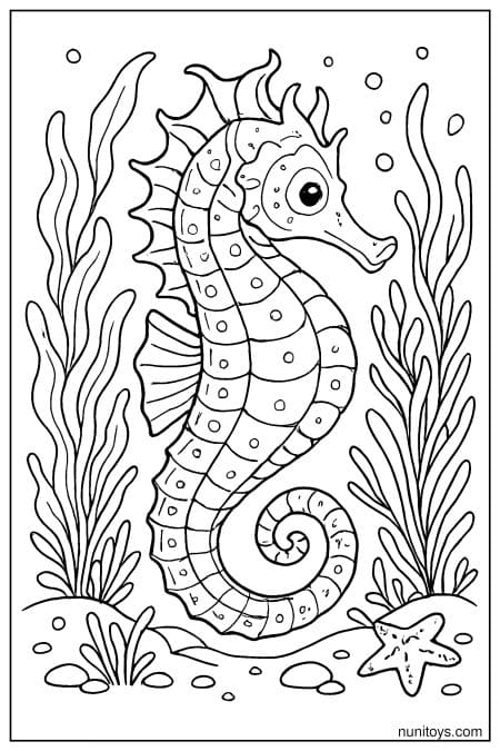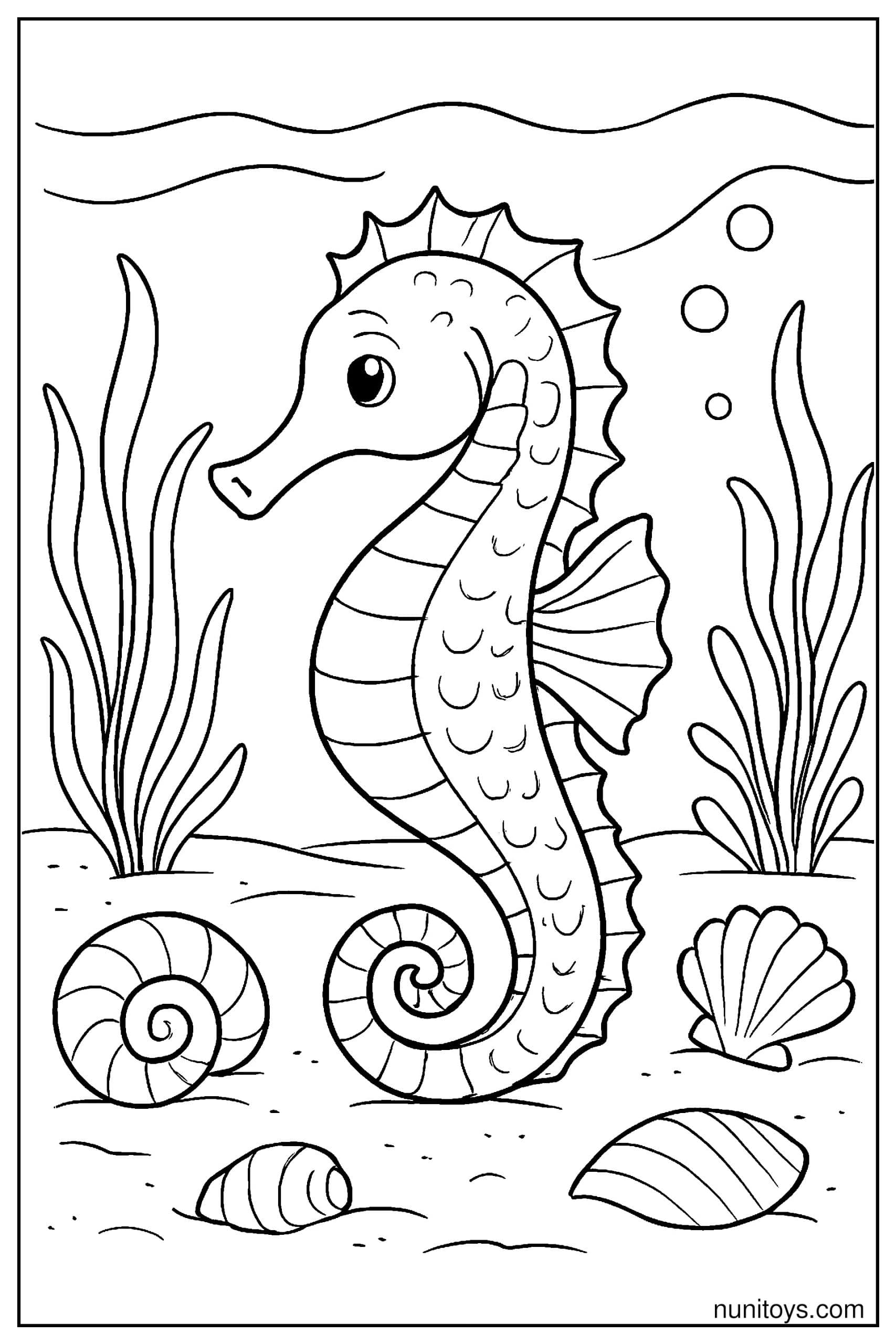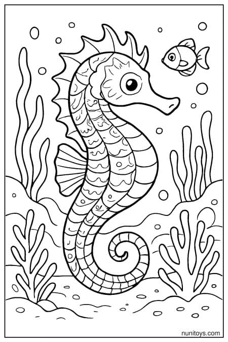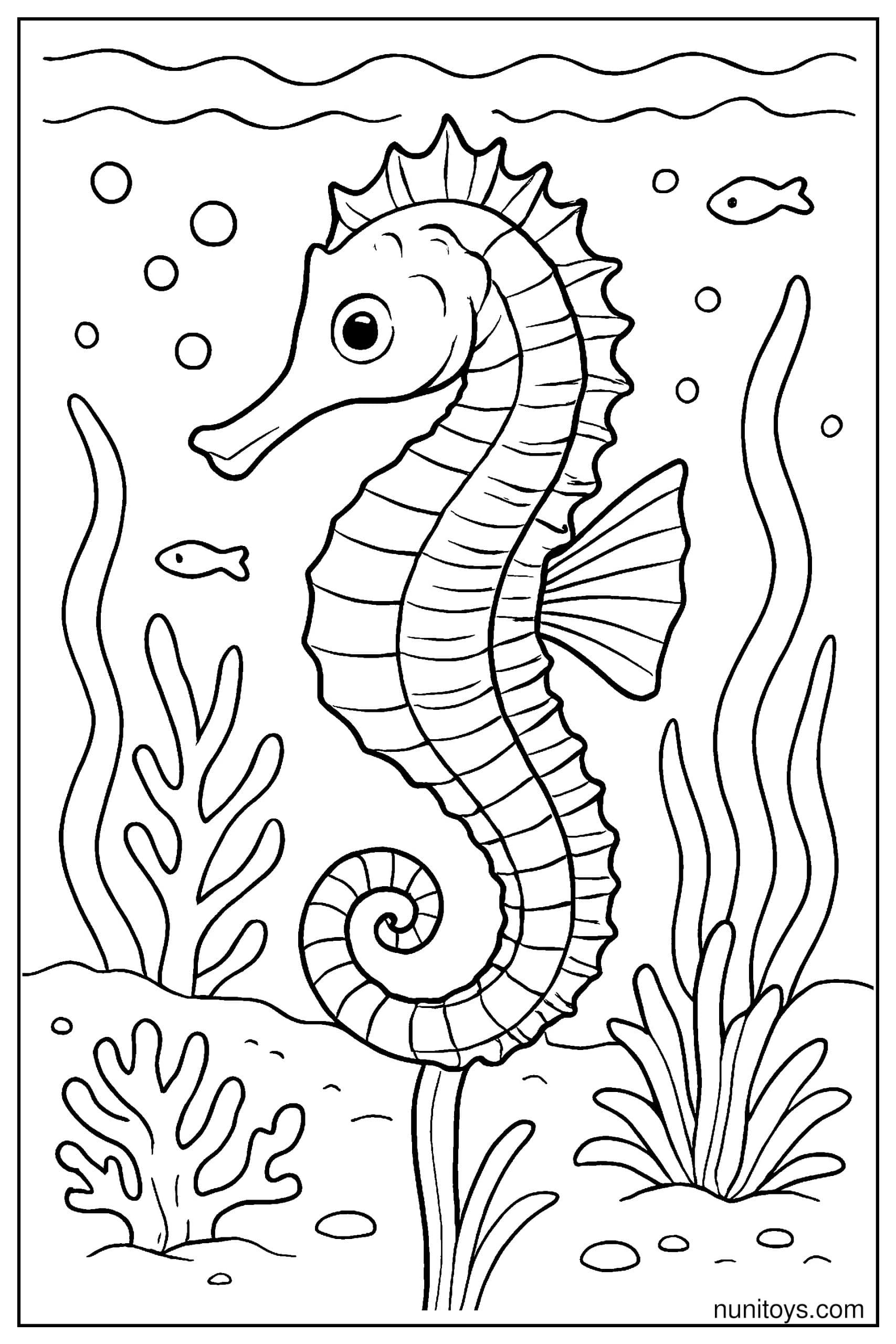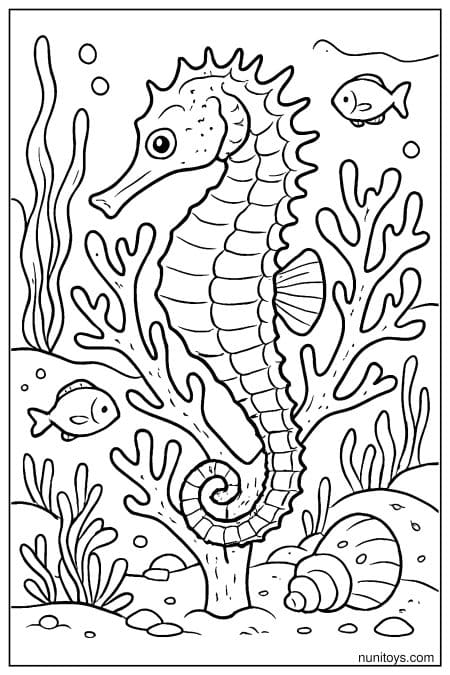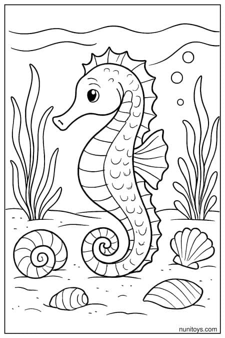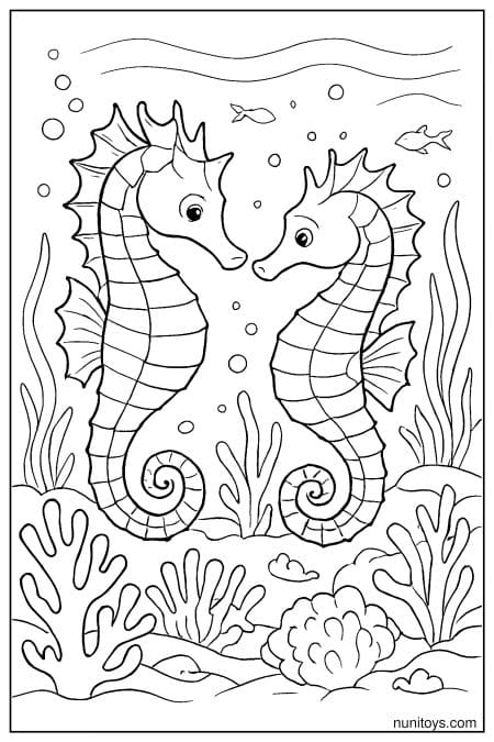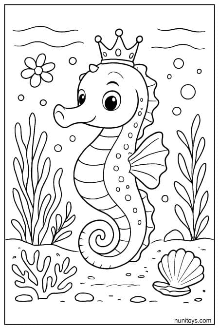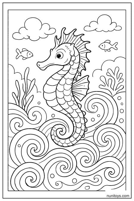 Dive into a graceful underwater world with these seahorse coloring pages, inspired by one of the ocean’s most elegant and fascinating creatures. Known for their curved bodies, delicate fins, and unique upright posture, seahorses bring a calm and magical feeling to every design. These pages highlight their beauty through detailed ocean scenes, decorative patterns, and imaginative compositions.