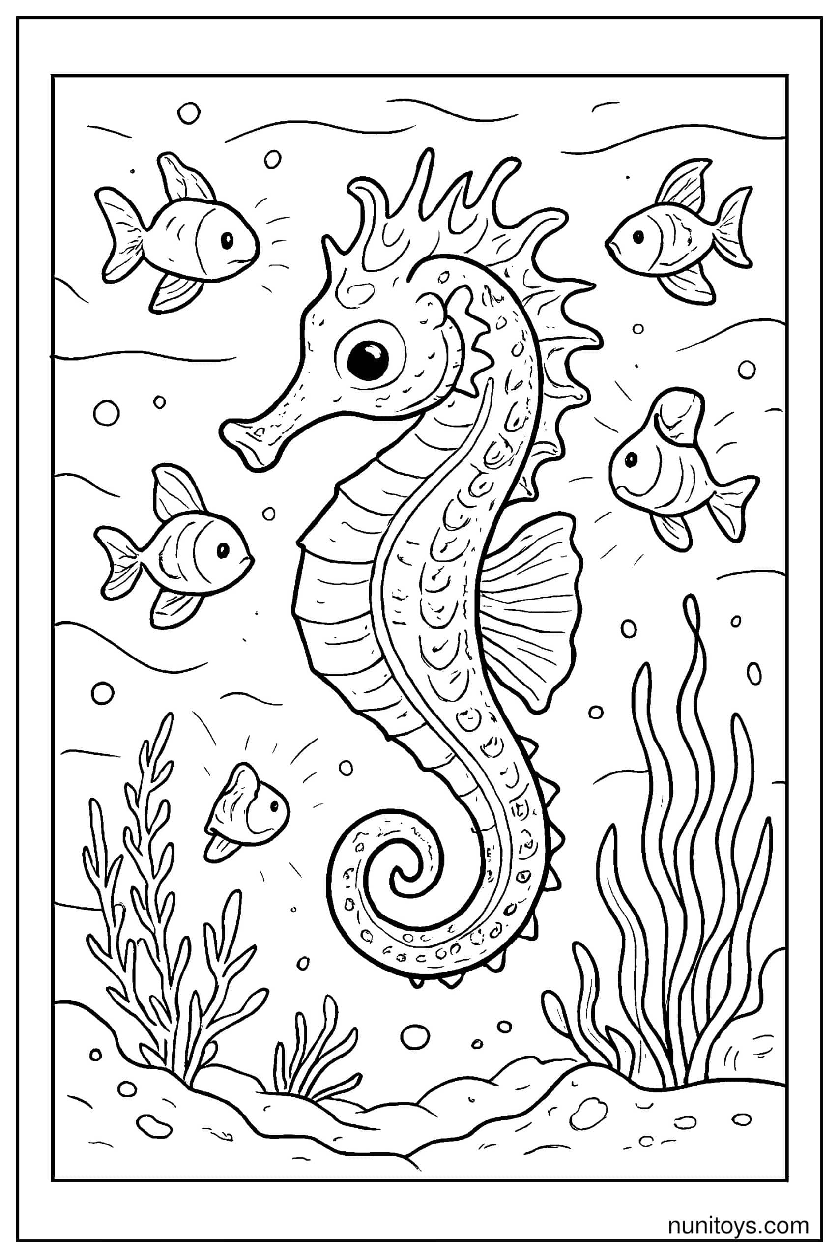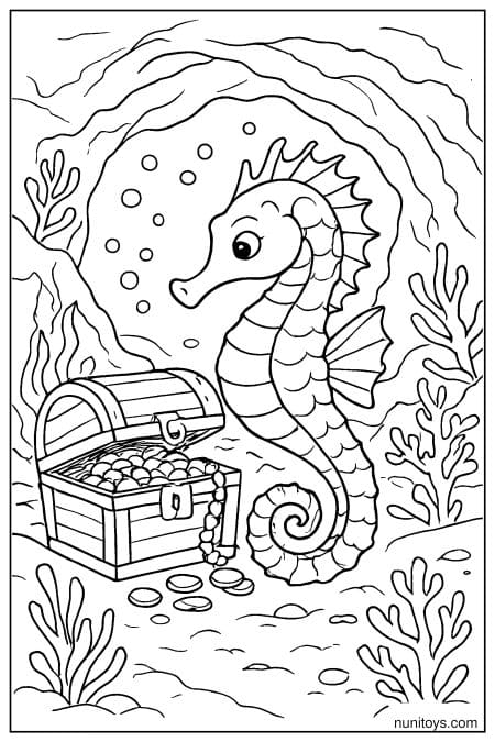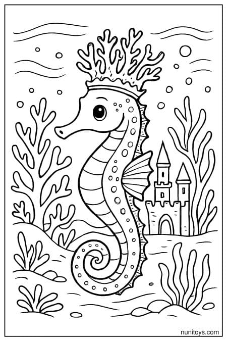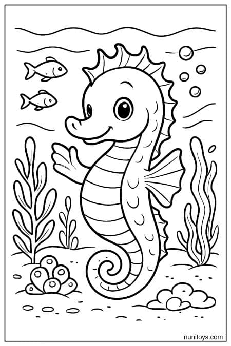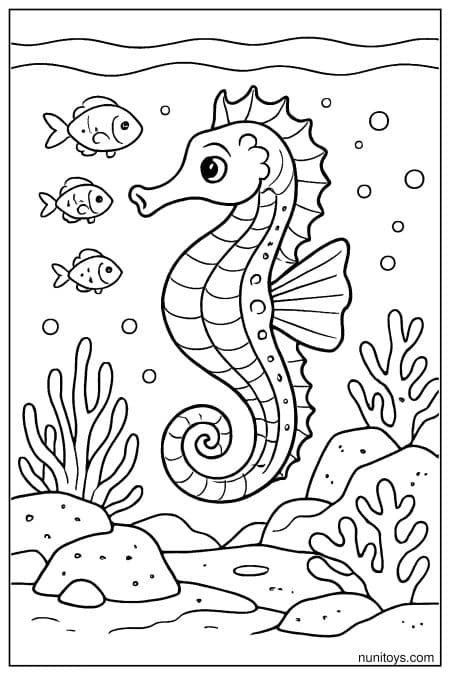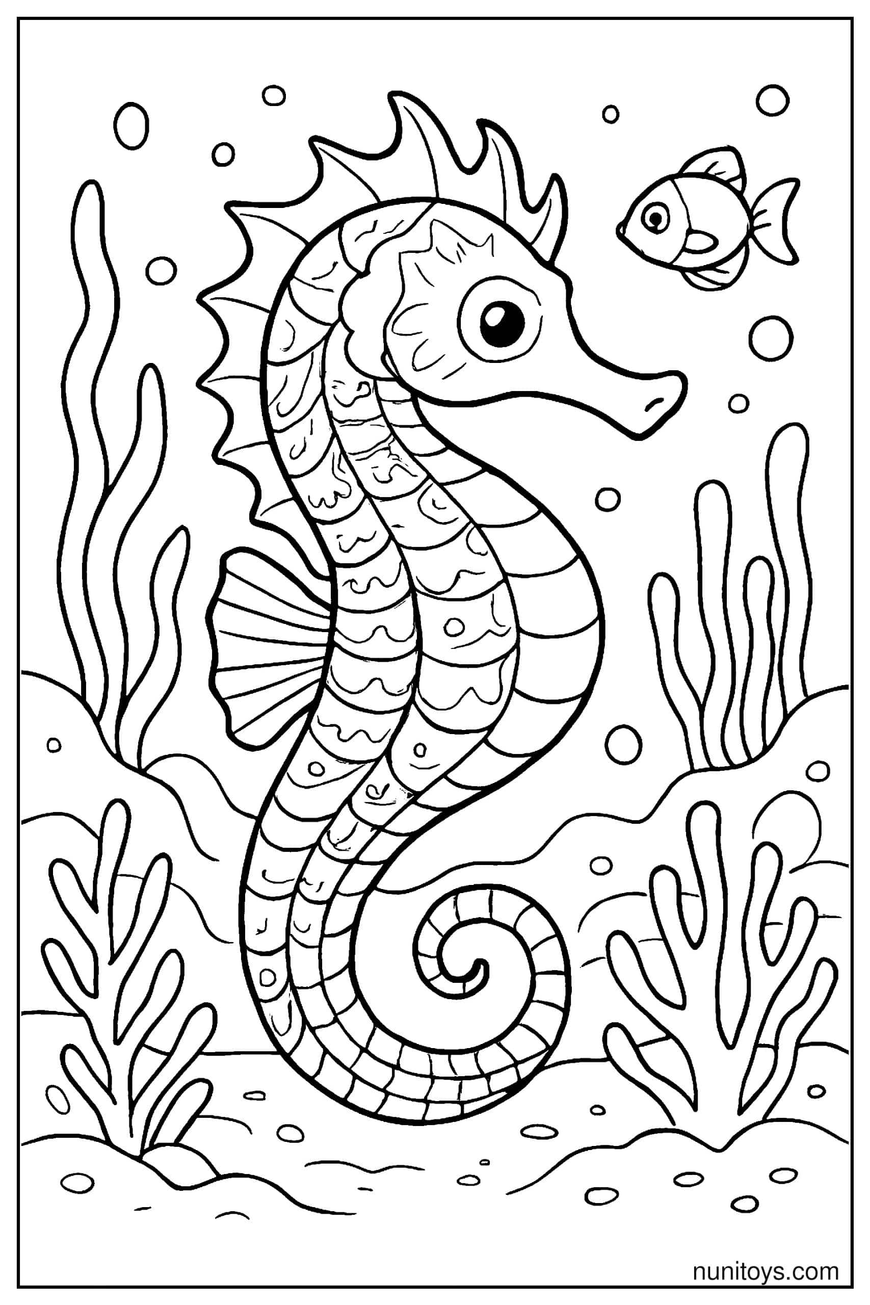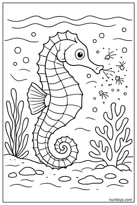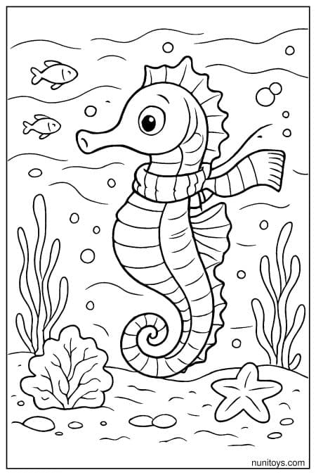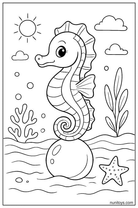 Dive into a graceful underwater world with these seahorse coloring pages, inspired by one of the ocean’s most elegant and fascinating creatures. Known for their curved bodies, delicate fins, and unique upright posture, seahorses bring a calm and magical feeling to every design. These pages highlight their beauty through detailed ocean scenes, decorative patterns, and imaginative compositions.