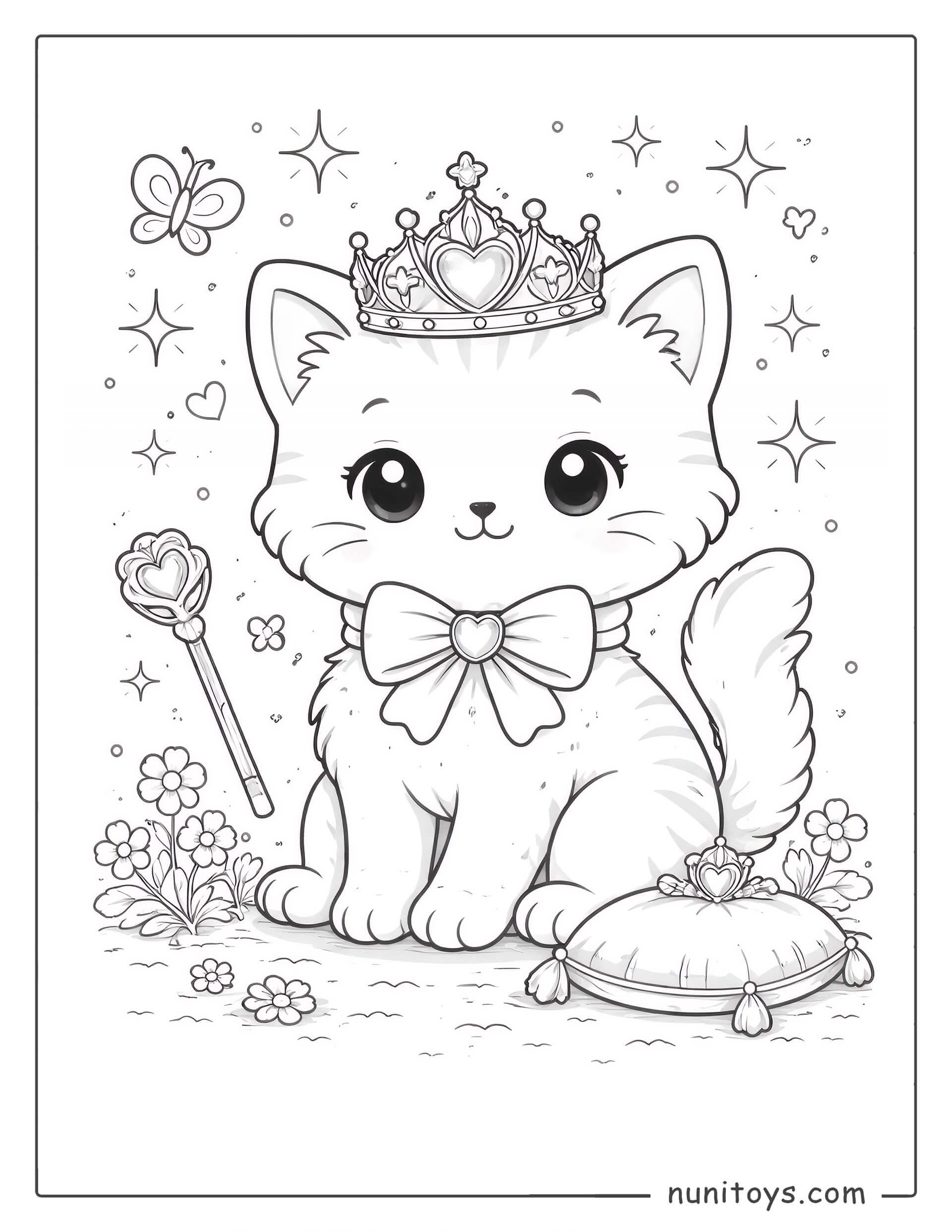 Gato adorable con varita mágica para colorear