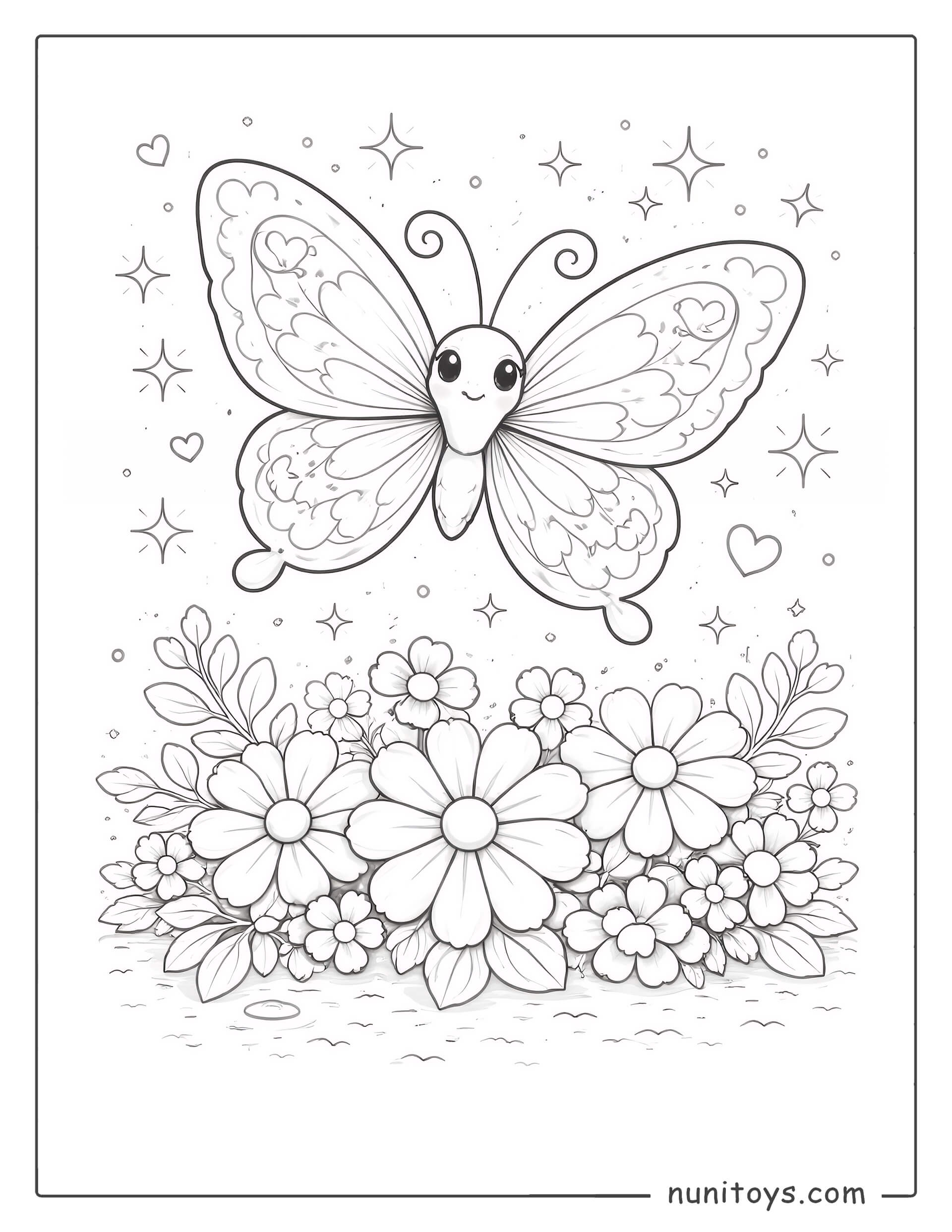 Mariposa adorable sobre flores para colorear