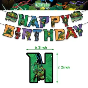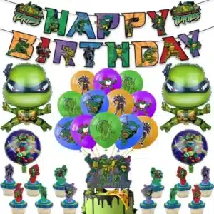 Ensemble d’anniversaire Tortues Ninja \u2013 accessoires colorés et durables avec les héros bien-aimés, parfaits pour une célébration amusante et aventureuse.
