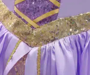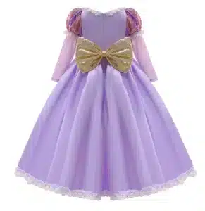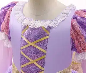 - Design Authentique de Raiponce : Le costume est soigneusement conçu pour refléter le look magique de Raiponce, y compris une somptueuse robe capturant le monde de la princesse.