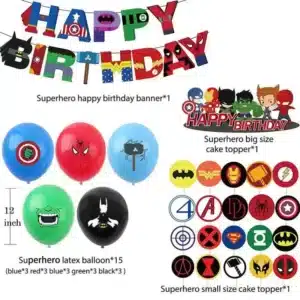 Apportez les aventures épiques des Avengers à votre fête avec un ensemble complet de fournitures de décoration d’anniversaire mettant en vedette les héros bien-aimés du MCU. Célébrez avec Iron Man, Thor, Captain America, Hulk, Ant-Man et Spider-Man pour une expérience inoubliable. Chaque article de cet ensemble est inspiré par les héros iconiques de Marvel, garantissant que les anniversaires, les fêtes d’Halloween ou toute occasion spéciale seront une expérience exaltante pour les enfants et les amis.