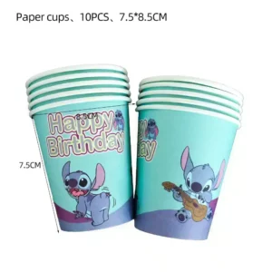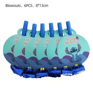 Le pack contient tout le nécessaire pour une célébration complète et dynamique : des ballons colorés, des assiettes, des gobelets, des serviettes, une nappe, des sacs cadeaux, des chapeaux sur le thème de Stitch, des décorations pour gâteaux, des fourchettes, couteaux et cuillères en plastique, et des cartes d’invitation uniques. Chaque article est soigneusement sélectionné et conçu pour correspondre à l’atmosphère magique de Stitch, ajoutant joie et couleur à chaque coin de la fête.