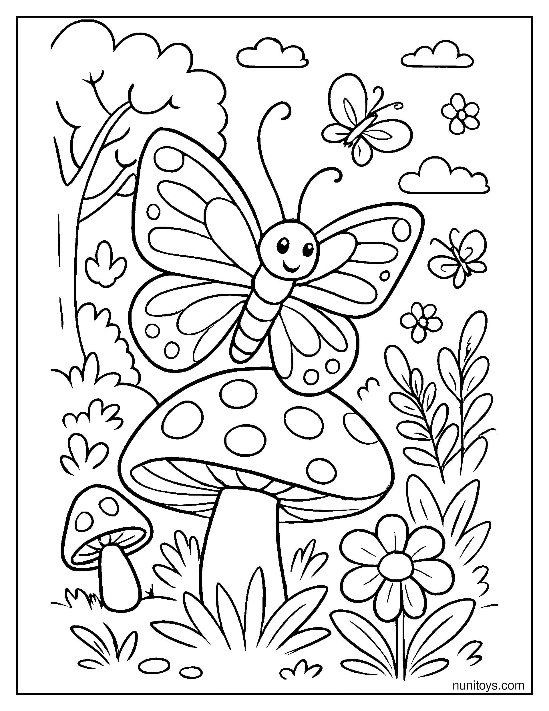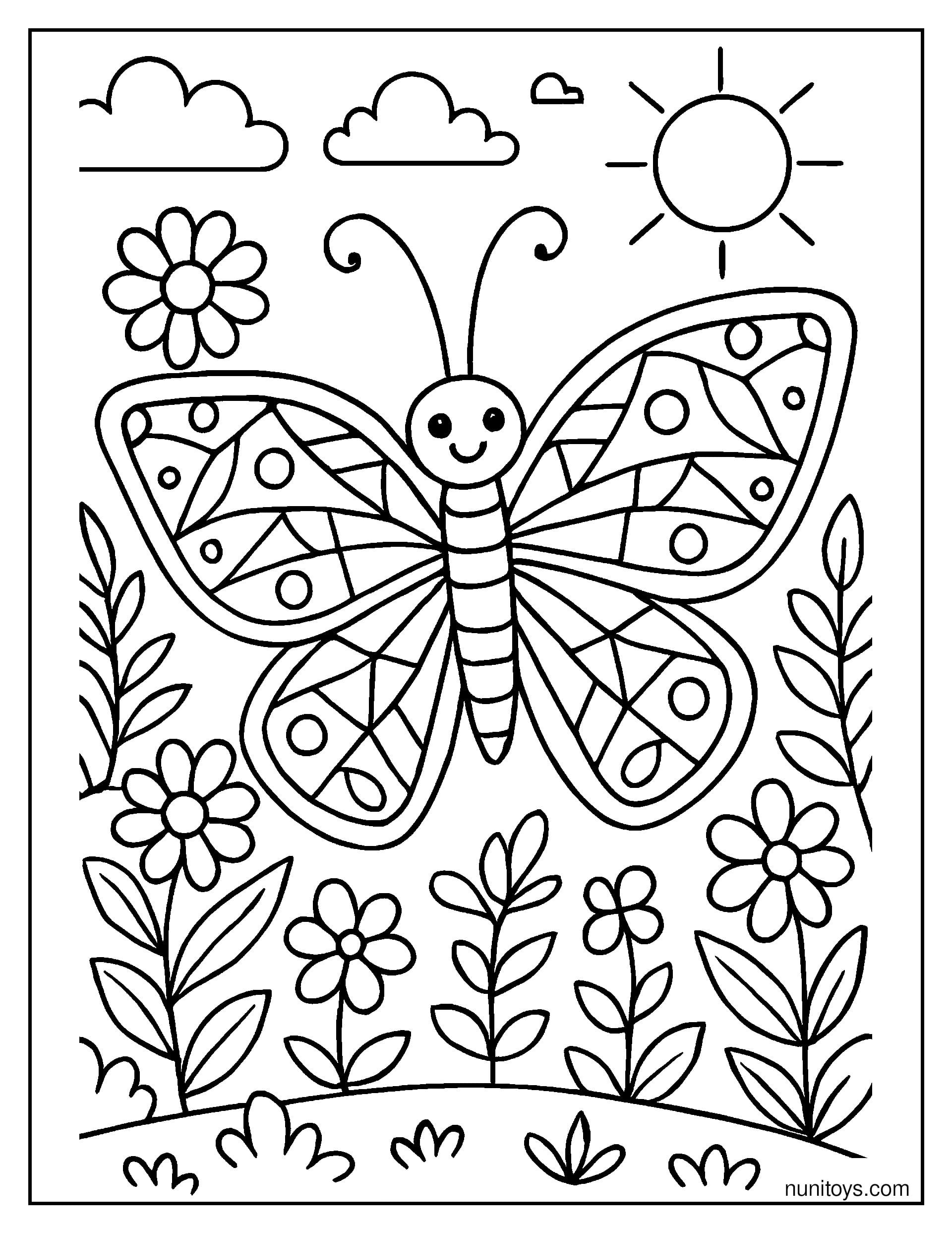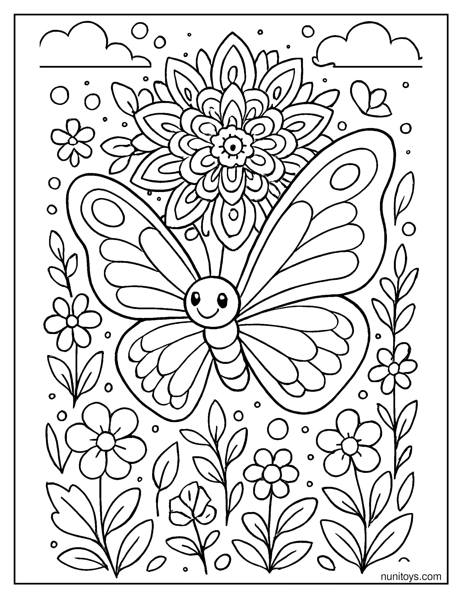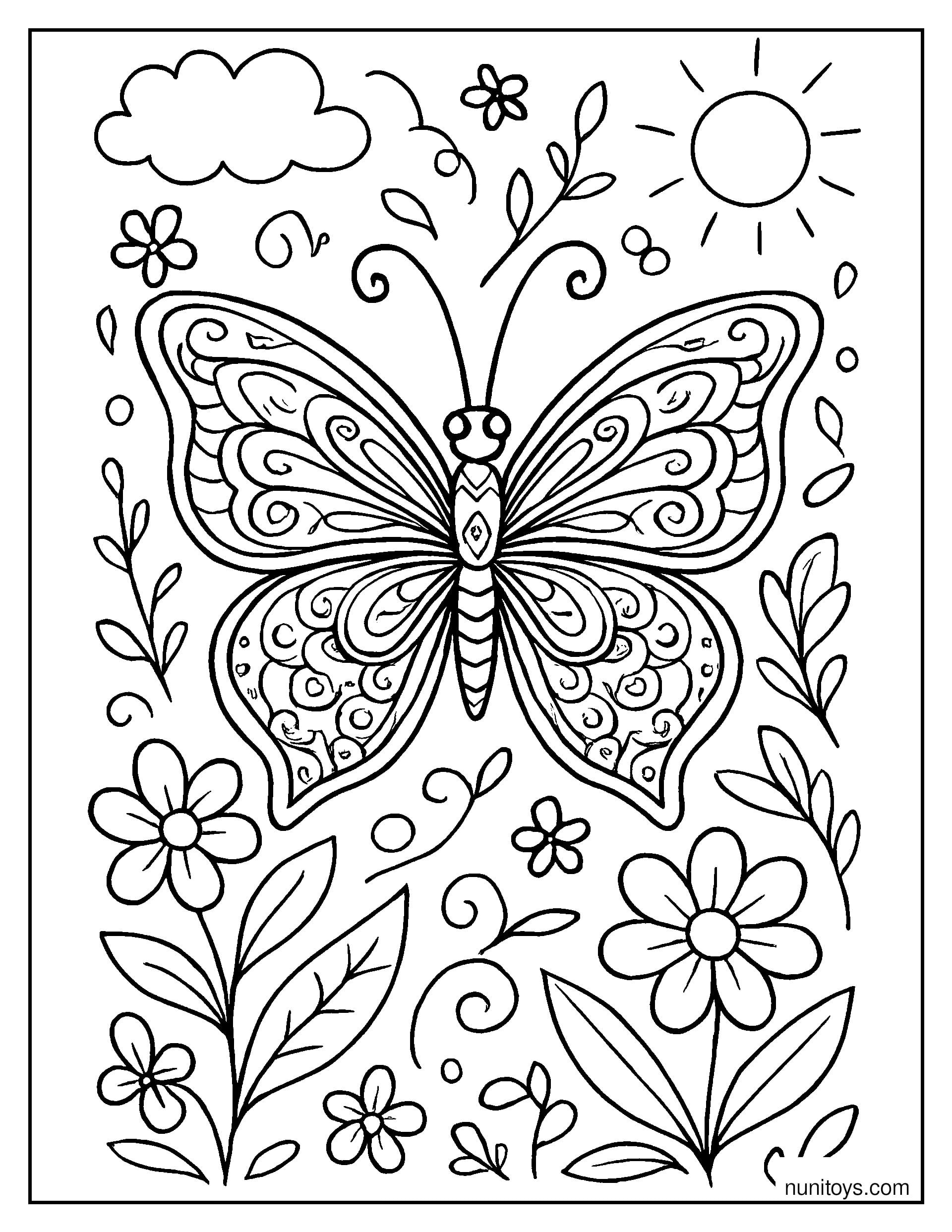בקולקציה הזו תמצאו מגוון רחב של איורים בהשראת טבע וגנים פורחים. יש פרפרים שנחים על פרחים, מוקפים בעלים וצמחייה עדינה, לצד פרפרים במעוף עם כנפיים פתוחות שמציגות דוגמאות סימטריות ומפורטות. חלק מהדפים מתמקדים בפרפר אחד מרכזי, בעוד אחרים מציגים מספר פרפרים בתוך סצנות עשירות של גינה או שדה פרחים.