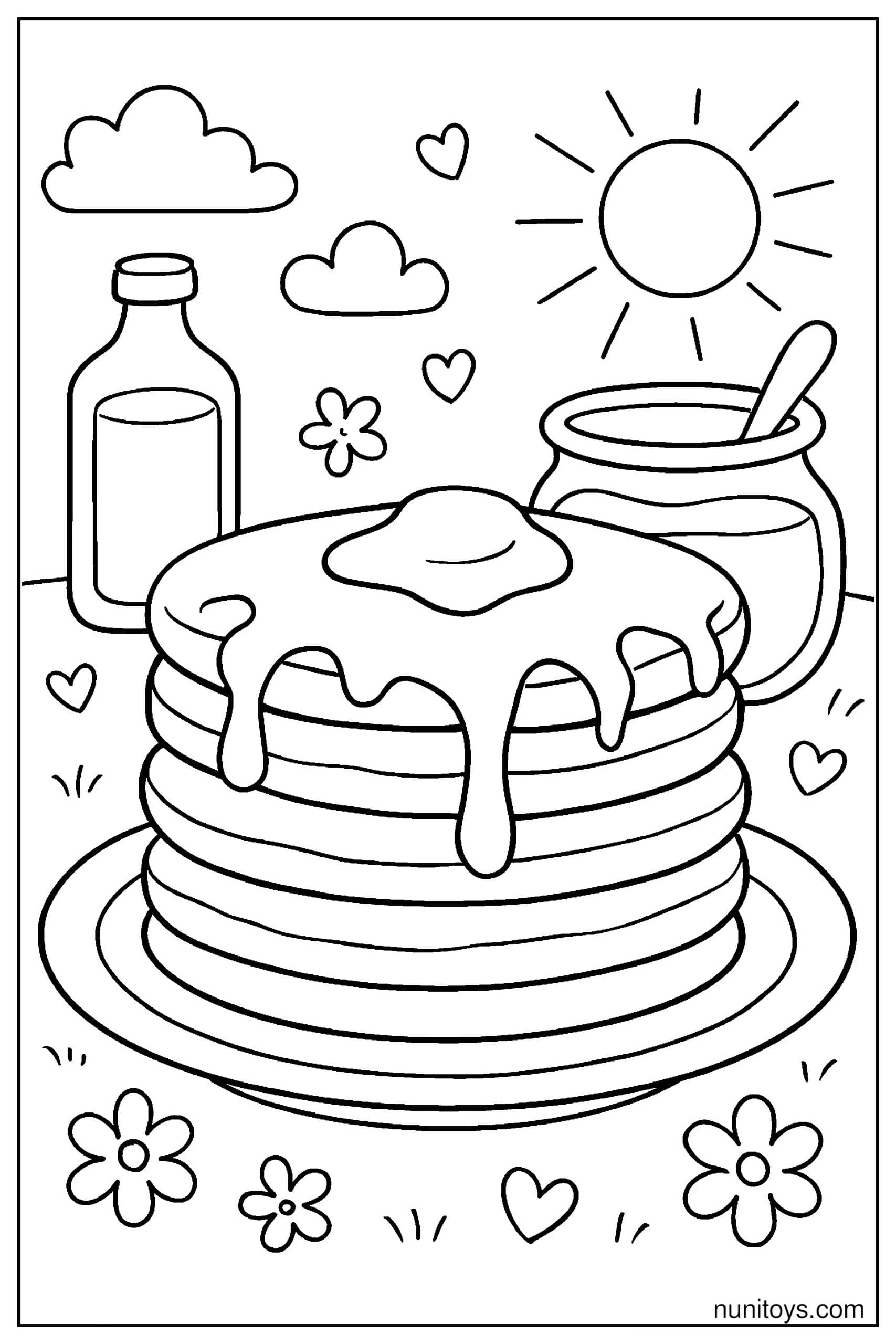 היכנסו לאווירת בוקר חמימה עם דפי צביעה של פנקייקים, שבהם ארוחת בוקר פשוטה הופכת לחוויה צבעונית ומעוררת תיאבון. הפנקייקים, עם המרקם הרך והצבע הזהוב, יוצרים נושא מושלם לצביעה מלאת פרטים והנאה.