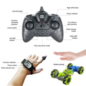 מכונית פעלולים בשלט רחוק – שלוש דרכי בקרה, תאורה צבעונית ומוזיקה. מתאימה לכל שטח, מבצעת פעלולים מרהיבים. מתנה מושלמת לילדים שאוהבים אקשן!
