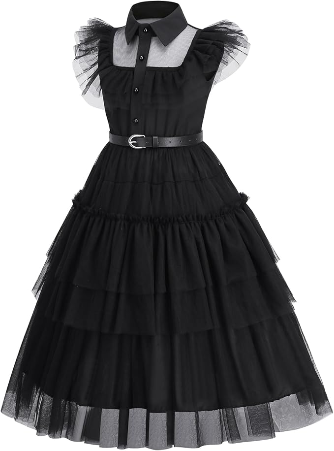 Transform your child into the mysterious and iconic Wednesday Addams with this beautifully designed Wednesday costume for girls. Inspired by the famous Addams Family movies and series, this gothic outfit perfectly captures Wednesday’s dark, elegant style while offering comfort and practicality for young fans.